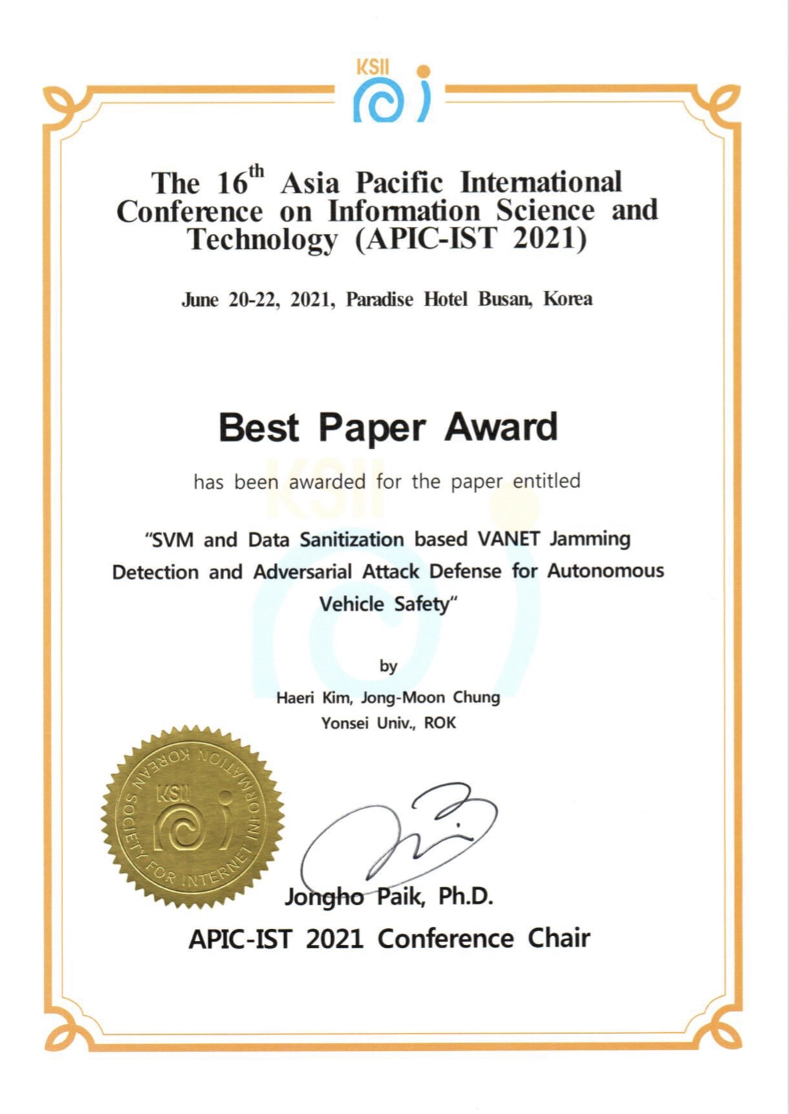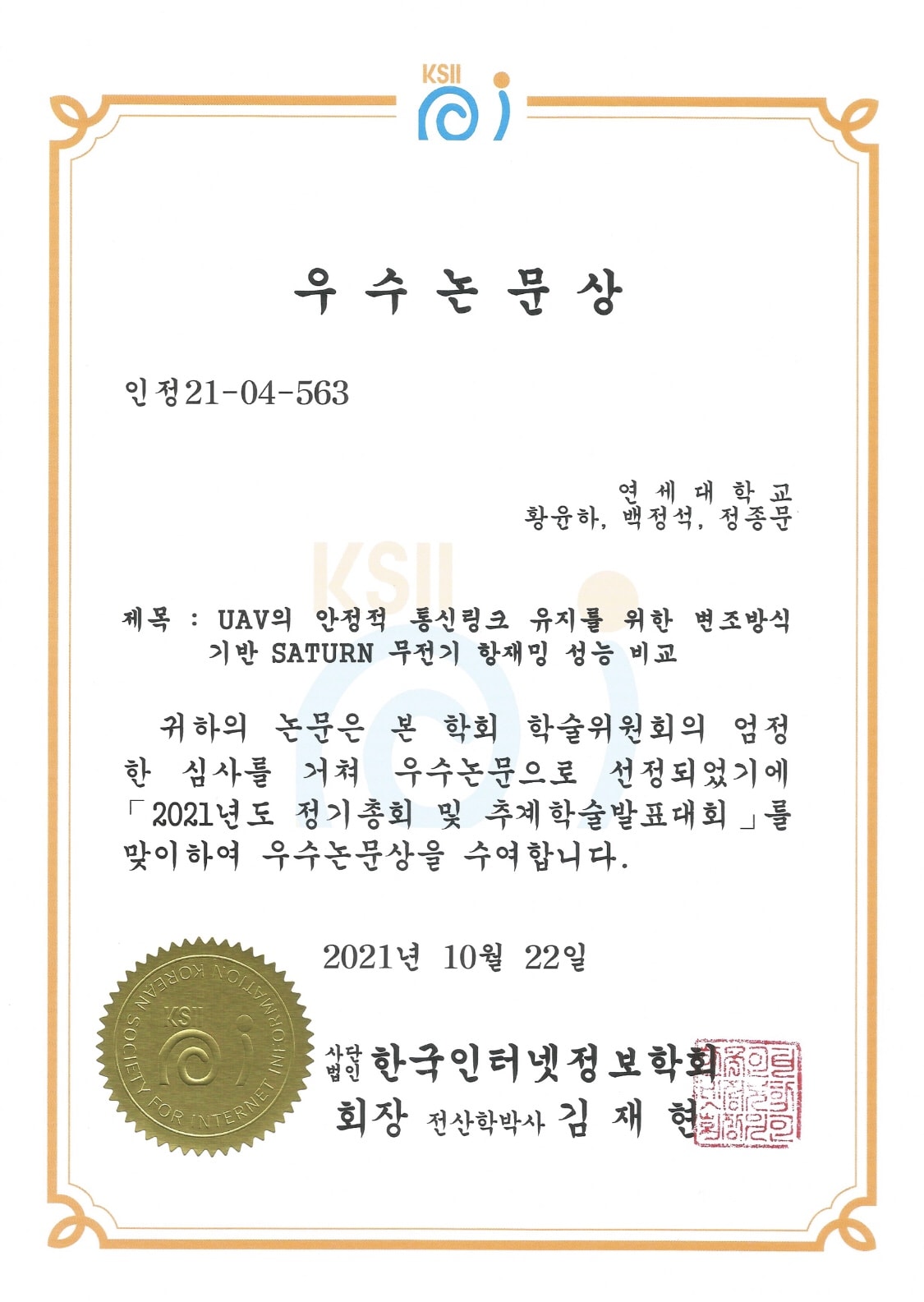 | ** 2021 Excellent Academic Paper Award ** |